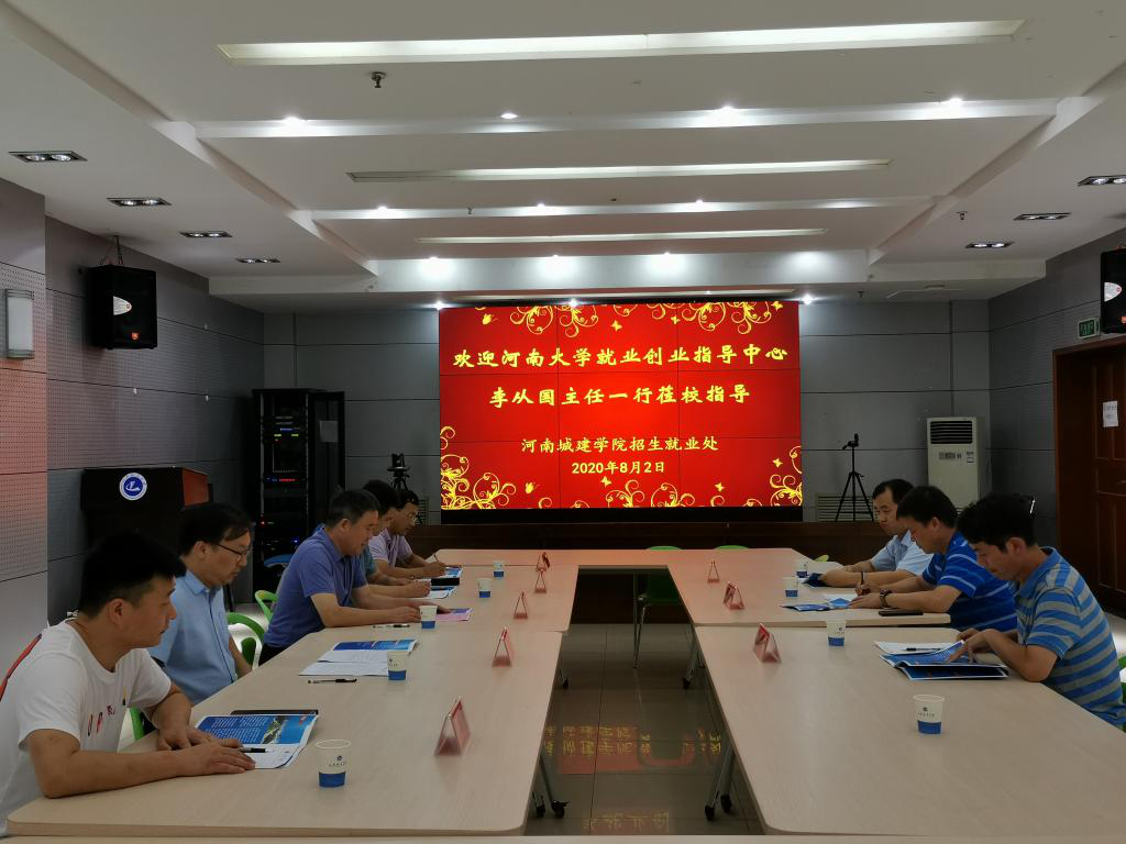 (通讯员 尹国友)8月2日下午,河南大学就业创业指导中心主任李从国携相关工作人员一行4人到我校进行交流学习,我校招生就业处及就业创业指导服务中心相关负责人参加。会议由招生就业处副处长何燚主持。