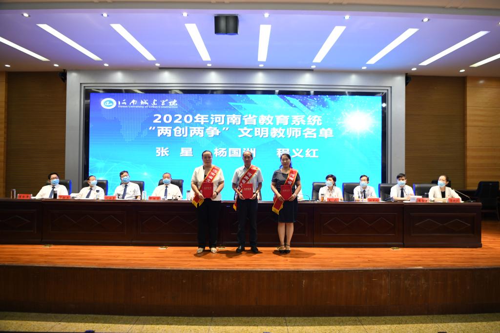 会上,对2020年河南省文明教师以及2019-2020学年校级师德标兵、优秀教师、先进教育工作者、优秀辅导员进行了表彰。