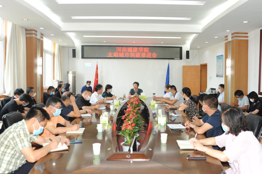 校党委委员、宣传部部长张建国传达了平顶山市创建全国文明城市工作推进会会议精神,并对我校文明城市创建工作任务进行了分解。