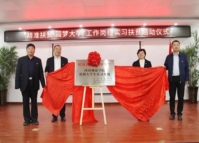 (通讯员 刘宇)10月24日,我校大学生“精准扶贫 圆梦大学”工作岗位实习扶贫启动仪式在中建七局平顶山高新区代(戴)庄棚户区改造项目会议室举行。我校党委副书记王靖,共青团平顶山市委副书记梁建,中建七局建筑装饰工程有限公司党委书记、董事长谢金松以及我校管理学院相关负责人出席仪式。