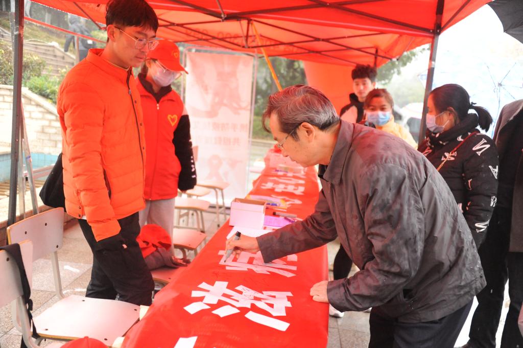 12月1日上午,主题活动在图书馆前喷泉广场举行。副校长杨风岭出席活动并讲话,校医院工作人员、校团委青协成员及部分学院师生参加本次活动。活动现场,杨风岭亲切慰问了正在开展活动的志愿者,与志愿者共同悬挂宣传条幅并在条幅上签名。他指出,积极开展艾滋病防控工作,加强艾滋病宣传教育,是高校应尽的职责和义务,对于当代大学生来讲,要积极学习和宣传艾滋病防治知识,掌握预防艾滋病的知识和技能,正视艾滋病给带来危害,树立良好的社会责任意识和正确的道德观。活动现场设立咨询台,通过知识展板、发放宣传资料、宣传条幅签名、提供艾滋病防治咨询等多种形式向学生普及艾滋病防治知识。