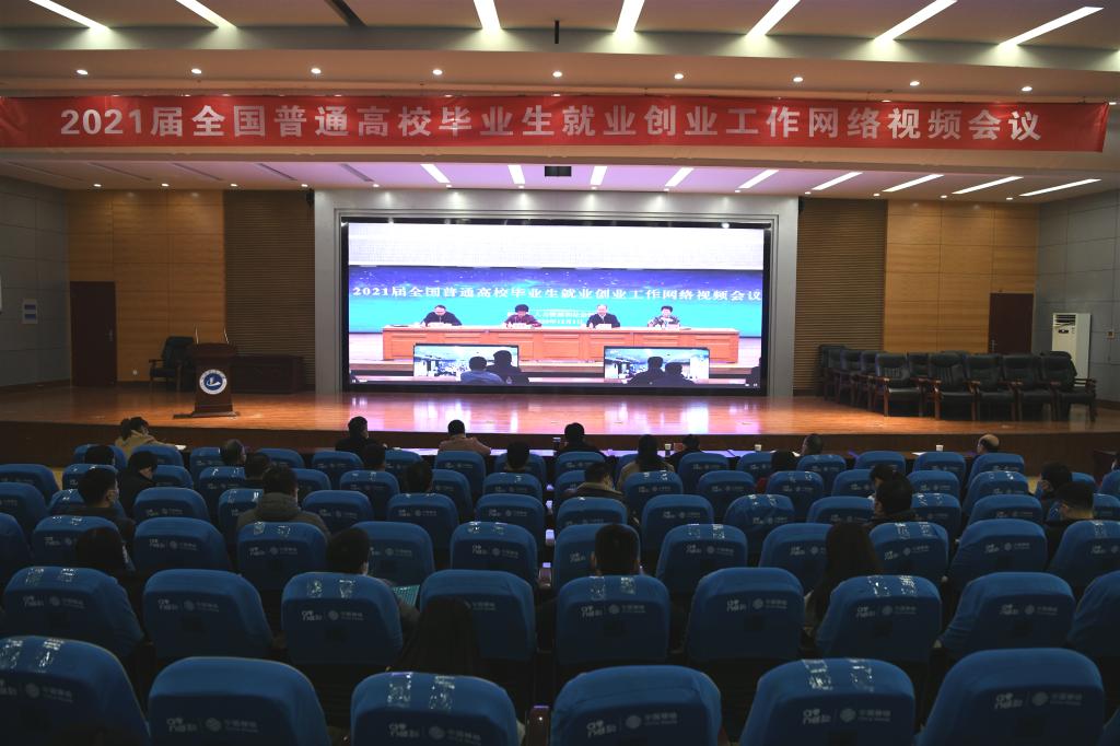 我校在行政楼学术报告厅设立分会场,组织收看网络视频会议。校党委书记张惠贞,副校长周颖杰、吴晓红和学生处、教务处、招生就业处等部门负责人以及各学院院长、党总支副书记、就业指导老师、毕业班辅导员等人员共同参加视频会议。