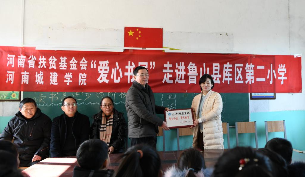 活动仪式上,许朝民代表学校向鲁山县库区乡第二小学、尧山镇新庄小学颁发了“爱心书屋”牌匾,河南省扶贫基金会向我校颁发了荣誉牌匾。