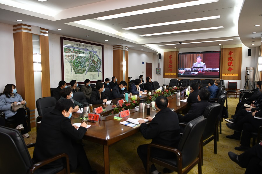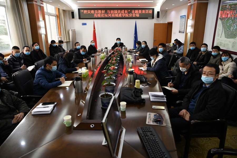 (通讯员 张崭)1月16日,由河南省教育厅主办,河南省高等教育学会、河南中医药大学承办,人民网公开课平台协办的“把灾难当教材与祖国共成长”主题教育高端论坛通过线上、线下相结合的形式举办。我校在行政楼第一会议室设立分会场,校党委书记张惠贞、党委副书记王靖、副校长周颖杰、吴晓红出席,部分中层干部代表、教师代表参加论坛。