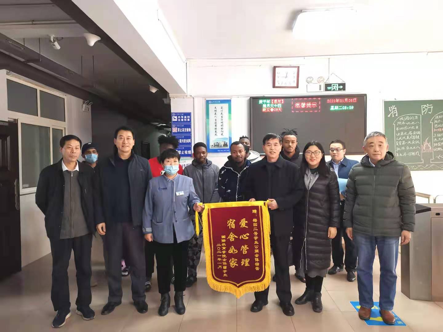 国际交流与合作处为在校留学生发放了假期汉语学习资料,后勤处对假期学生的宿舍管理做了具体的安排部署。双方对学生宿舍管理人员的出色工作给予了肯定和表扬,并赠送了锦旗。
