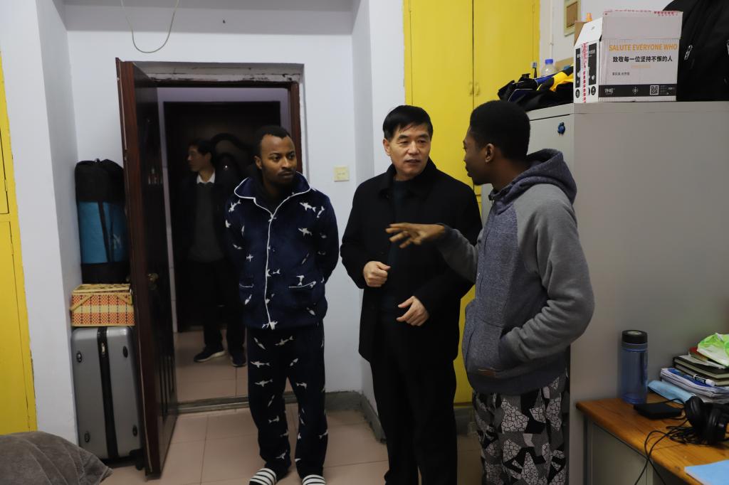 (通讯员 董松涛 刘宁)1月26日上午,副校长宿金勇到留学生公寓看望春节期间留校的外国留学生,检查指导新冠肺炎疫情防控工作。国际交流与合作处(国际教育学院)、后勤处(后勤管理服务中心)等相关人员陪同。