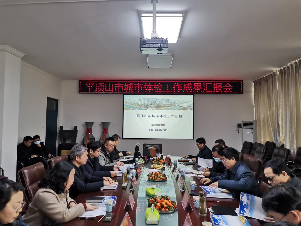 (通讯员 尤培波)1月27日上午,平顶山市城市体检工作成果汇报会在我校召开。平顶山市城市体检评估工作领导小组副组长、市人大常委会副主任韩宏亮,市城市管理局副局长胡国笋一行参加会议。校长王召东、副校长陈松涛出席会议。科研处(学科办)、土木与交通工程学院、管理学院、市政与环境工程学院、建筑与城市规划学院、测绘与城市空间信息学院、艺术设计学院、计算机与数据科学学院等单位负责人和项目组骨干成员参加了会议。科研处处长、学科办主任毛艳丽主持会议。