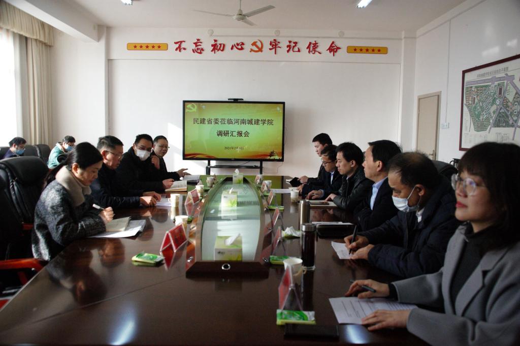 (通讯员 李松鹏)2月5日上午,民建河南省委二级巡视员李峰就党派自身建设和参政议政情况来我校调研,中共平顶山市委统战部常务副部长张中俊、民建省委调研处副处长杨森、民建平顶山市委主委赵国良随行调研。校党委书记张惠贞会见李峰一行。调研汇报会在行政楼党委会议室召开,校党委副书记、工会主席许朝民出席会议并致辞,党委统战部、科研处等相关职能部门负责人和民建支部成员代表参加会议。汇报会由民建市委副主委吴会亭主持。