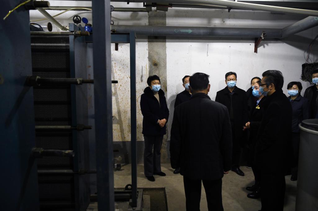 在龙翔校区水电及供热泵房,张惠贞一行查看了水电供暖等设备运转情况并叮嘱工作人员要让大家过一个温暖的春节。