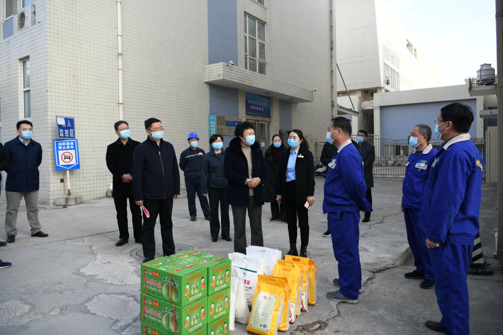 在行政楼总值班室,张惠贞一行查看了值班室环境询问了值班情况,向他们坚守一线表示敬意并送上慰问品,鼓励大家继续守好岗、尽好责,全力做好保障工作,同时叮嘱他们保重身体,做好疫情防控工作。