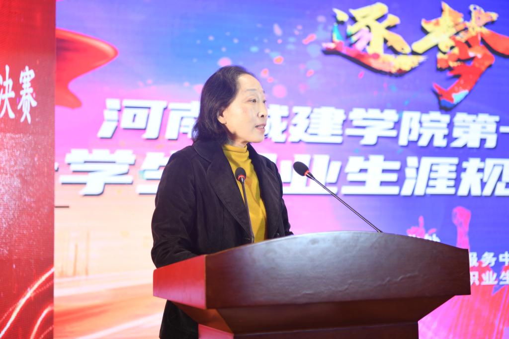 吴晓红致欢迎词,她代表学校向出席总决赛的领导专家、老师和同学们表示热烈欢迎,并详细介绍了我校举办大学生职业生涯规划大赛的目的意义以及我校大学生职业生涯规划工作的发展历程和现状。她指出,我校自2006年举办第一届大学生职业生涯规划大赛至今,已连续成功举办了十六届比赛,是全省开展职业生涯规划大赛最早的高校之一,也是坚持届数最多的高校之一。大学生职业生涯规划大赛现已成为我校的精品赛事,成功带动了我校各类职业生涯规划和就业指导活动的蓬勃开展。她希望,广大学生要增强职业规划意识,科学合理的规划自己的大学学习和生活,树立正确的成才观和就业观,积极服务国家战略,把个人理想追求融入国家和民族事业中,到祖国和人民最需要的地方去建功立业,为实现中华民族伟大复兴贡献青春力量。