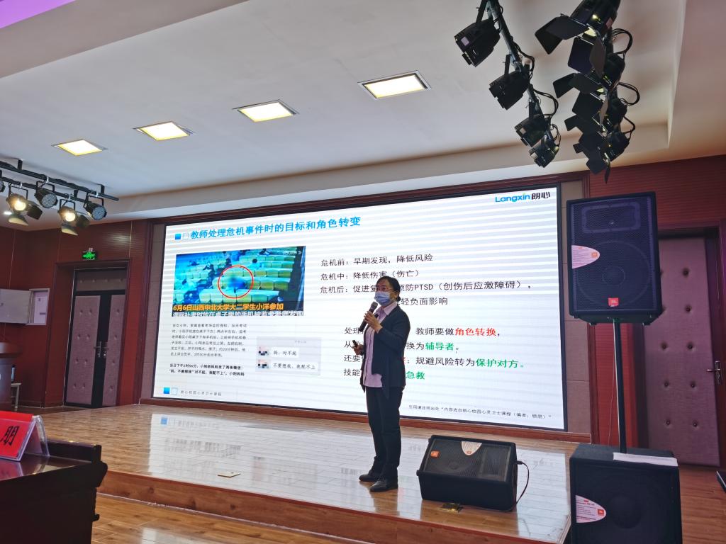 会上,中国社会工作联合会心理健康工作委员会理事、心理急救学部秘书长锁朋老师为与会人员开展了校园心理危机干预及心理访谈技能专题培训,大学生心理健康教育指导中心主任赵灵芝对此次心理普查工作及宣传周活动进行了全面部署安排。