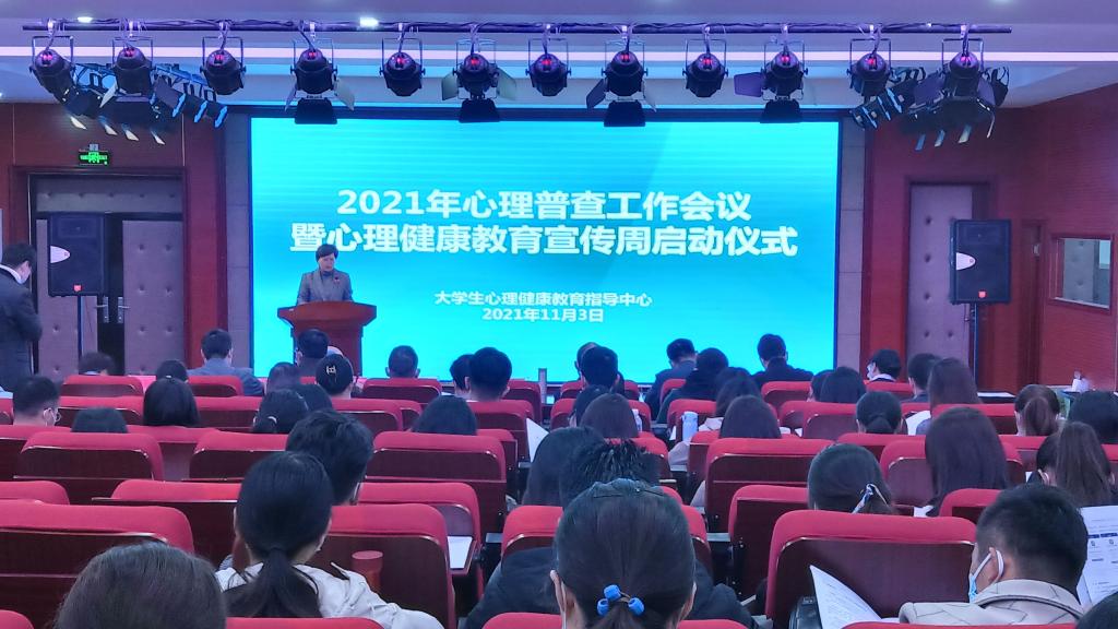 为深入学习习近平新时代中国特色社会主义思想,持续贯彻落实全国全省高校思想政治工作会议精神,切实加强和改进新时代高校师生心理健康教育工作,提升高校心理育人质量,我校于11月3日上午召开了2021年心理普查工作会议暨心理健康教育宣传周启动仪式。校党委副书记王靖出席启动仪式并讲话,学生工作部(处)、大学生心理健康教育指导中心等相关职能部门负责人以及各学院党委书记、副书记、团学办主任、心理辅导专干教师、专兼职辅导员和大学生心理健康教育指导中心全体人员参会。启动仪式由大学生心理健康教育指导中心主任赵灵芝主持。