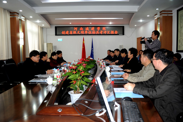 11月20日上午,由省纪委机关党委纪检监察员杨道众任组长,省文明办志愿服务工作处副处长李丽、市文明办主任程贵平、市纪委机关党委书记徐志远为成员的省级文明单位标兵考评组来校考评检查工作。我校在第一会议室召开汇报会。校党委书记张惠贞主持会议并作主题汇报。校领导杨留栓、张坤书、王春阳、赵金安、许朝民、梁再培出席会议,校党政办、组织部、宣传部、纪委、学工部、校工会、团委、后勤处、后勤集团、保卫处等部门负责同志参加会议。