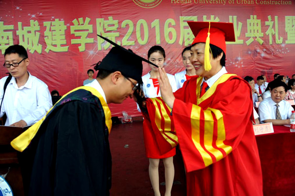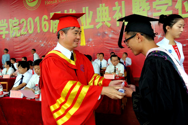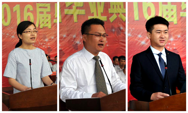 典礼上,副校长杨留栓教授宣读了关于表彰2016届省级、校级优秀应届毕业生的决定;校党委副书记张坤书教授宣读了关于表彰2016年优秀学生党员的决定;副校长王春阳教授宣读了关于授予陈丹等4882名学生学士学位的决定。与会校领导为省、校级优秀应届毕业生代表和优秀毕业生党员代表颁发了荣誉证书。毕业生代表兰闯闯、教师代表武海荣、校友代表王甲寅先后发言。