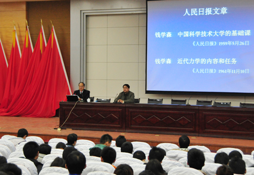 为纪念钱学森先生百年诞辰,激励和引导广大师生继承和发扬老一辈科学家的优良传统,积极投身科技创新实践活动,12月9日下午,中国科学院研究生院张瑜教授应我校邀请,在学术报告厅作了题为《钱学森先生的教育思想与教育实践》的精彩报告。报告会由宣传部部长闫中华主持。400多名师生聆听报告。