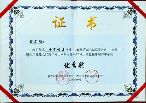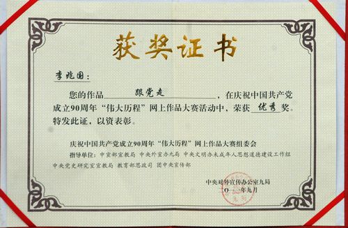 近日,教育部“永远跟党走——庆祝中国共产党建党90周年网上系列主题活动”总结表彰会在京举行。我校艺术系学生李兆国的红色动漫作品《跟党走》荣获中宣部等六部委庆祝中国共产党成立90周年网上系列活动动漫类优秀奖、艺术系学生田允明的摄影作品《爱党情 通四方》荣获教育部“永远跟党走——庆祝中国共产党建党90周年网上系列主题活动”摄影类优秀奖,我校荣获中宣部等六部委庆祝中国共产党成立90周年网上系列活动优秀组织奖。我校集体和个人奖项分别成为相应奖项中河南省唯一获得者。