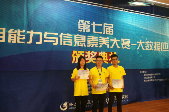 (通讯员 王梦琪)5月27日,由全国高等院校计算机基础教育研究会、全国高等学校计算机教育研究会等主办的第七届全国大学生计算机应用能力与信息素养大赛---大数据应用技术赛项在北方国际大学联盟哈尔滨广厦学院举行。本次大赛中,共有来自全国46个参赛队伍的137位竞赛选手参赛。我校由计算机与数据科学学院教师杨盛苑指导,学生聂伟、张科伟、李雪的参赛项目荣获三等奖。