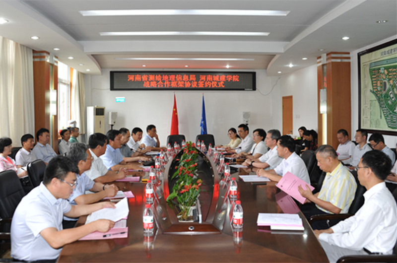 (通讯员 张英新)6月9日下午,“河南省测绘地理信息局 河南城建学院战略合作框架协议”签约仪式在行政楼第一会议室举行。河南省测绘地理信息局局长刘济宝、我校校长王召东出席签约仪式并致辞。河南省测绘地理信息局纪委书记何晨、副局长宋新龙、我校副校长梁再培、校长顾问李生平、河南省测绘地理信息局及河南城建学院相关处室和院部负责人参加会议。会议由副校长王靖主持。