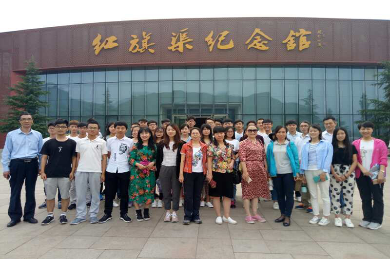 6月11日上午,师生一行赶赴红旗渠现场进行实地观摩学习。在红旗渠纪念馆,广大师生通过一幅幅生动的图片、一段段感人的故事、一件件简陋的工具以及“凌空点炮”、“凤凰双展翅”声光电模拟的展示,让大家置身于当年林州人民风餐露宿、顽强拼搏、撼天动地、誓与太行比高低的恢宏场景之中,深刻感受了“自力更生、艰苦创业、团结协作、无私奉献”的红旗渠精神。随后,参观了红旗渠青年洞,实地见证了林州人民艰苦创业,在悬崖峭壁之上人工开凿天渠的伟大壮举。全体师生在青年洞前怀着崇敬的心情合唱了经典歌曲《定叫山河换新装》。