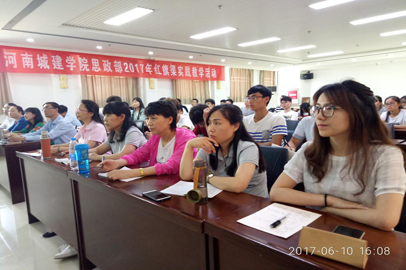 6月10日下午,师生共同聆听了林州市委党校副校长马东兴的题为《红旗渠精神及其时代价值》的讲座,他从形成背景、内涵、时代价值等方面对红旗渠精神做了精彩阐述。