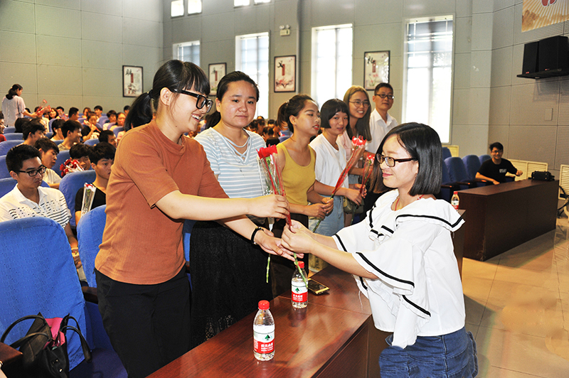 最后送吉祥环节,工作人员为参加讲堂的全体师生献上了以“德”为名的,象征孝悌忠信、礼义廉耻、仁爱和平、勤朴古健、果义敢为、居安思危、善始善终等一切美好品行的康乃馨,希望这朵“德行”之花在我们心中永远盛开。
