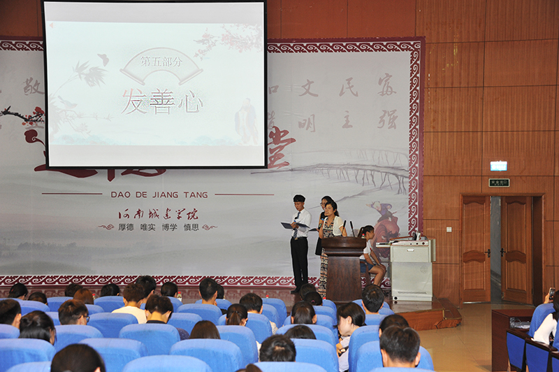 本期道德讲堂共有省自身,唱歌曲,学模范,诵经典,发善心,行崇德礼,送吉祥七个环节。