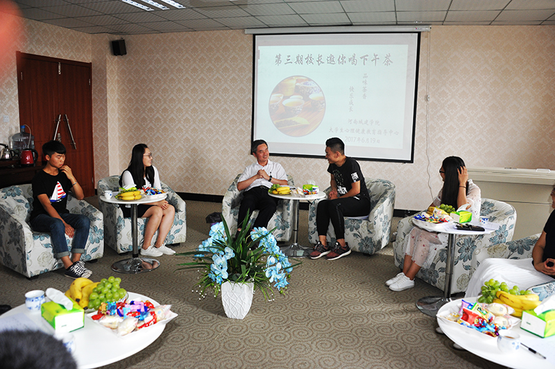 (通讯员 阮松丽)6月19日下午,我校第三期“校长邀你喝下午茶”活动在大学生心理健康教育指导中心心理成长辅导室举行。校长王召东与来自不同学院的9名同学品茗畅谈,共话感恩、成长与梦想。