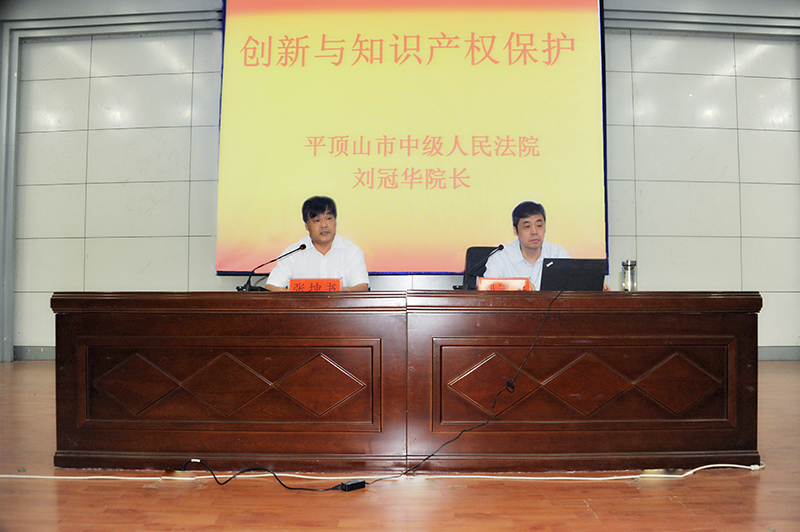 (通讯员 苏芸芳)6月20日下午,平顶山市中级人民法院院长刘冠华应邀来校为我校师生作了题为《创新与知识产权保护》的报告。报告会在校行政楼学术报告厅举行,校党委副书记张坤书、副校长梁再培出席报告会。报告会由张坤书主持。