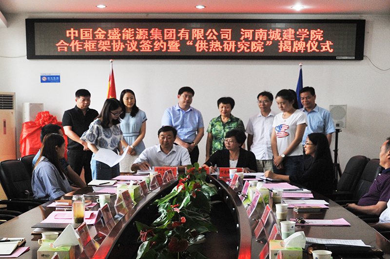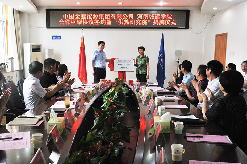 (通讯员 付浩卡)6月21日上午,中国金盛能源集团有限公司与河南城建学院合作框架协议签约暨“河南城建学院供热研究院”揭牌仪式在行政楼第一会议室举行。校党委书记张惠贞,副校长王靖,中国金盛能源集团有限公司董事长兼总经理魏军委出席仪式。会议由王靖主持。