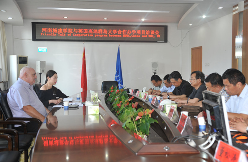 杨风岭对Lorenzo Cairns一行的到来表示热烈欢迎,他简要介绍了平顶山市的历史沿革及自然资源,并就我校的发展历程、办学规模、专业设置、人才培养、师资队伍建设、科学研究、国际合作交流等方面的基本情况进行了阐述。他表示,河南城建学院重视与高地与群岛大学的合作,为合作项目建设与实施做了大量工作。他说,两校自建立友好合作关系以来,在共同开展合作办学等方面取得了实质性成果,学生培养质量不断提高,项目生源良好,发展顺利。希望两校之间的交流与合作更深入、更广泛,提高两校的教育水平和社会影响,实现共赢。
