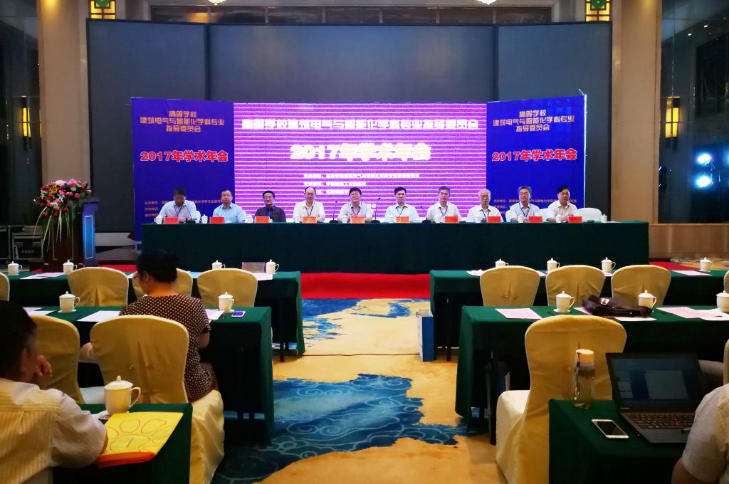 (通讯员 祁林 宁蕴绯)7月29至30日,由全国高等学校建筑电气与智能化学科专业指导委员会主办,中国建筑工业出版社支持,我校承办的“2017年全国高等学校建筑电气与智能化学科专业学术年会在我校召开。7月29日上午,会议开幕式在中信国安大酒店举行。住房和城乡建设部人事司高教处处长何志方,中国建筑工业出版社社长助理高延伟,高等学校建筑电气与智能化学科专业指导委员会主任委员、安徽建筑大学校长方潜生,高等学校建筑电气与智能化学科专业指导委员会副主任委员、西安建筑科技大学研究生院副院长于军琪,高等学校建筑电气与智能化学科专业指导委员会副主任委员、南京工业大学自动化与电气工程学院副院长张九根,高等学校建筑电气与智能化学科专业指导委员会顾问寿大云、任庆昌, 河南省住建厅人事处副处长傅月笙, 平顶山市住建局总工樊爱武,我校校长王召东,副校长赵金安、梁再培出席会议,全国高校建筑电气与智能化专业的九十余位教师、4家企业以及我校部分师生代表参加本次会议。