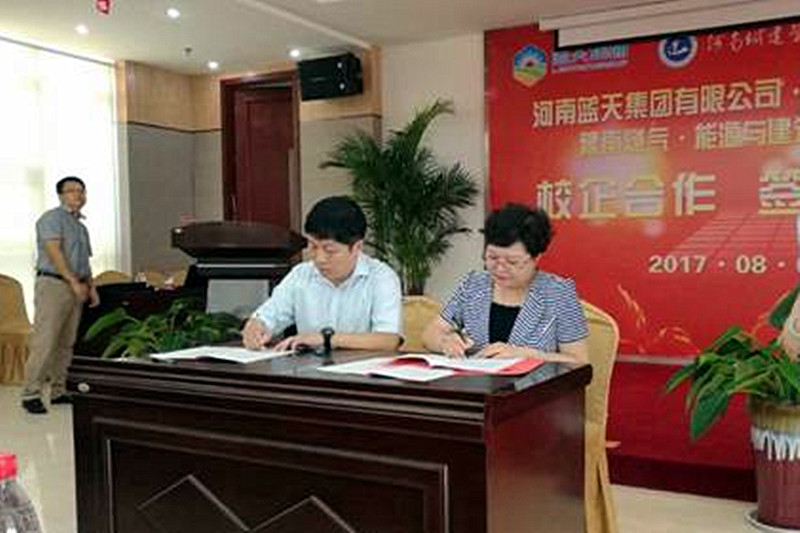 (通讯员 付浩卡)8月5日上午,我校与河南蓝天集团有限公司校企合作框架协议签订暨“燃气工程技术”开班仪式在驻马店市蓝天集团有限公司总部多功能会厅举行。河南蓝天集团有限公司副总经理彭盛楠、河南蓝天燃气股份有限公司常务副总经理黄涛,河南蓝天集团有限公司豫南燃气总经理李三星,我校副校长王靖、校能源与建筑环境工程学院、合作与发展规划处、继续教育学院等相关同志参加仪式。