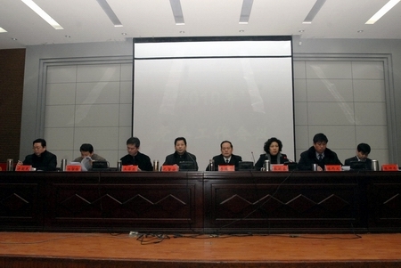 1月25日上午,我院在学术报告厅召开2010年党委工作会议。院党委书记李德平,院党委副书记、院长孔留安,院党委副书记、纪委书记张莉蓉,院党委委员、副院长王召东、陈丙义、杨留栓,院党委委员、工会主席张坤书,院党委委员、组织部部长许朝民出席会议,会议由张莉蓉主持。全院副科级以上干部、教授、博士参加会议。