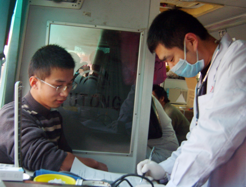 这5天里,献血的同学络绎不绝,有很多同学趁课间走到献血车旁排队等候,乐观勇敢地献血后又匆匆离去。我院学子这种无偿献血的奉献精神感动着现场的医护人员和组织者。两名献血的大一同学说:“无偿献血是公民的光荣义务,不仅可以帮助需要的人,还能通过血液检验了解自身的健康状况,一举多得。”