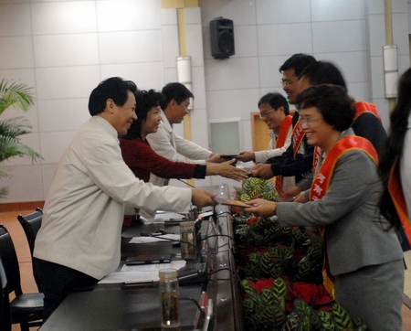 会上,王召东宣读了《关于表彰河南省优秀教师、河南省教育系统优秀教师、河南省教育厅学术技术带头人的决定》和《关于表彰河南城建学院2008-2009学年优秀教师和先进教育工作者的决定》,陈丙义宣读了《关于表彰2008-2009学年“文明教师”和“三育人先进个人”的决定》等表彰文件。院领导在欢快的乐曲声中分别为获奖代表颁发了获奖证书。