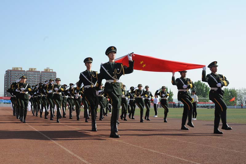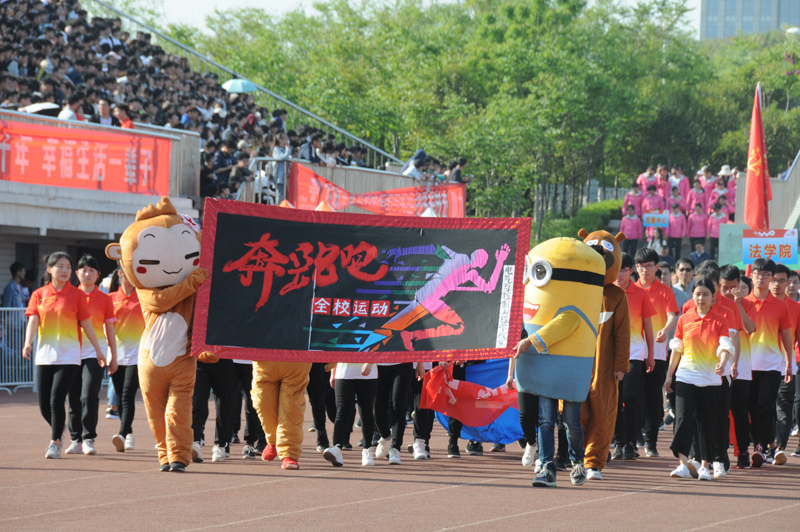 激昂的旋律,矫健的步伐。在雄浑豪迈的《运动员进行曲》中,国旗、校徽、军乐团、花束、彩旗等方队,裁判员,各学院和机关教辅代表队精神抖擞地步入运动场,全场观众报以热烈的掌声和欢呼声。在全体师生的注目下,五星红旗伴随着雄壮的国歌声冉冉升起。