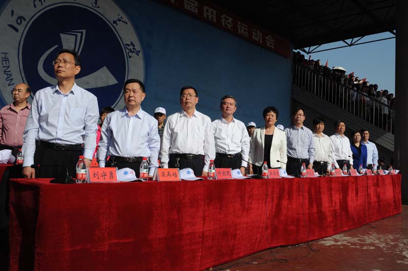(通讯员 腾飞)春光明媚,生机盎然。4月19日上午,我校第九届田径运动会在校田径运动场开幕。校领导张惠贞、王召东、张坤书、许朝民、赵金安、杨风岭、梁再培、王靖、刘守勇、周新峰出席开幕式,全校师生齐聚运动场,参加开幕式。校党委书记张惠贞宣布运动会开幕,校长王召东致开幕词。中国联通平顶山分公司党委书记、总经理朱练忠应邀出席开幕式。开幕式由副校长赵金安主持。