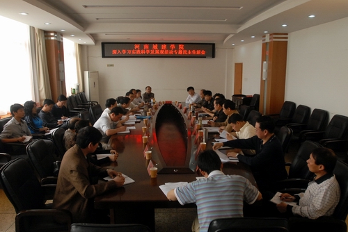 按照省委高校工委、省教育厅学习实践活动分析检查阶段的部署和我院学习实践活动的总体安排,5月26日上午,我院召开院级领导班子深入学习实践科学发展观活动专题民主生活会。省管高校学习实践活动第八指导组组长、河南工程学院正院级调研员邢天来、郑州航空工业管理学院组织部副部长岳县伟、河南经贸职业学院宣传部部长柴赟莅临指导工作。会议由院党委书记李德平主持,院党委副书记、院长孔留安,院党委副书记、纪委书记张莉蓉,副院长杨留栓,工会主席张坤书出席会议并分别就在学习实践科学发展观活动中存在的问题和原因作了剖析发言。院党代会代表、教师代表、民主党派代表、老干部代表、学生代表和学习实践活动领导小组办公室成员列席会议。