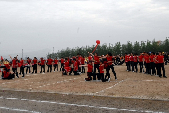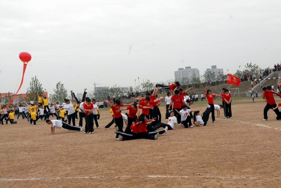开幕式结束后,进行了大型团体操表演。三百余人的太极表演以圆活轻灵、稳似劲松的招式和不断变幻的队形彰显着中华民族的灿烂文明和高深智慧;队形中心,不断变换的刀法、套路、双节棍和散打表演则传颂着中华武术文明的源远流长与博大精深;而十六个系部近五百名学生的健身操表演,则用轻柔与舒缓、刚劲与稳健诠释着城建学子的青春与活力。
