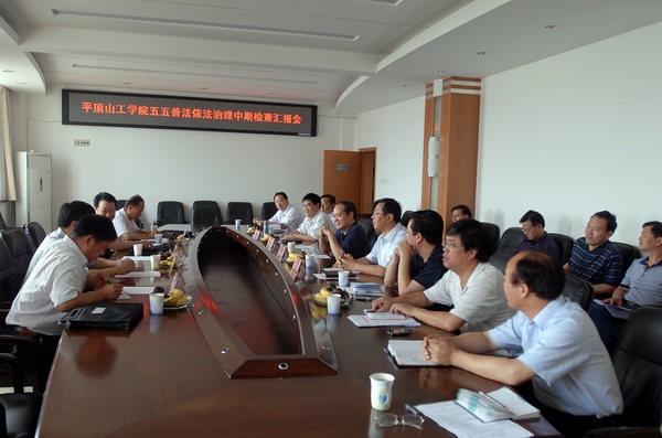 根据听取汇报、查阅资料和座谈测评情况,检查组对我院“五五”普法依法治校情况进行了意见反馈。市委组织部干部培训科的刘鹏科长代表检查组对我院“五五”普法依法治校工作给予了充分肯定和高度评价,认为我院领导高度重视,思路清晰;依法办事,措施得力;寓学于教,形式多样;工作扎实,成效显著。从全市横向比较来看,我院是较好完成各项考核内容的单位之一,工作特色明显,具有宣传推广意义,期待平工的“五五”普法能取得更大的成绩。