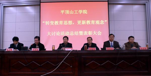 3月28日下午,我院召开“转变教育思想,更新教育观念”大讨论活动总结暨表彰大会,院领导李德平、孔留安、史战芳、王召东、杨留栓、张坤书出席会议,全院副高级以上职称教师、博士、副科级以上干部和辅导员参加了会议,会议由副院长王召东主持。