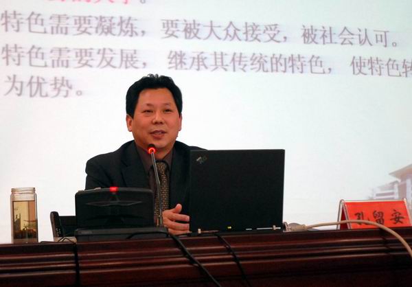 最后,院长孔留安围绕着“建设什么样的大学、培养什么样的人才及确立什么样的办学理念”作了题为《建设城建特色大学,培养综合创新人才》的重要报告。孔院长的报告共分三个部分:(一)建设什么样的大学——建设城建特色大学;(二)培养什么样的人——培养具有综合素质和创新能力的高级专门人才;(三)确立什么样的办学理念——教学与科研相统一,培养综合创新人才。