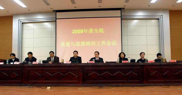 3月21日下午,我院召开2008年度全院党建与思想政治工作会议,学习贯彻全国全省党建工作会议、组织工作会议和宣传思想工作会议精神,回顾总结我院十六大以来的党建与思想政治工作,研究分析当前我院党建与思想政治工作面临的新形势和新情况,安排布署2008年的党建与思想政治工作。院党委书记李德平作报告,院党委副书记、院长孔留安主持会议,院领导张莉蓉、史战芳、王召东、陈丙义、杨留栓、张坤书出席会议,全院中层干部,机关科级以上干部,各团总支书记、副书记,院(系)办公室主任、副主任,教学秘书和专兼职辅导员参加会议。
