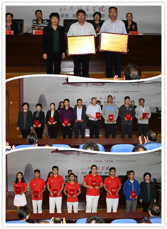 会上,王靖宣读了河南城建学院少数民族传统体育运动先进集体和先进个人表彰决定。大会对荣获“先进集体”的体育教学部、管理学院和荣获“先进个人”的74名师生进行了表彰。荣获先进称号的管理学院相关负责人,师生代表分别上台发言,总结了参与民族体育运动的感受和收获。
