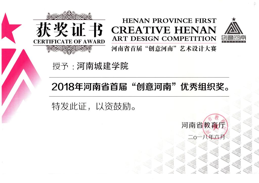 (通讯员 刘龙琳)近日,由河南省教育厅主办的河南省首届“创意河南”艺术设计大赛落下帷幕。我校艺术设计学院师生在比赛中成绩优异,分别获得专业组金奖2项、银奖3项;学生组金奖1项、银奖3项、铜奖4项;优秀成果奖3人、最佳设计师1人,同时,我校获得“优秀组织奖”荣誉称号。