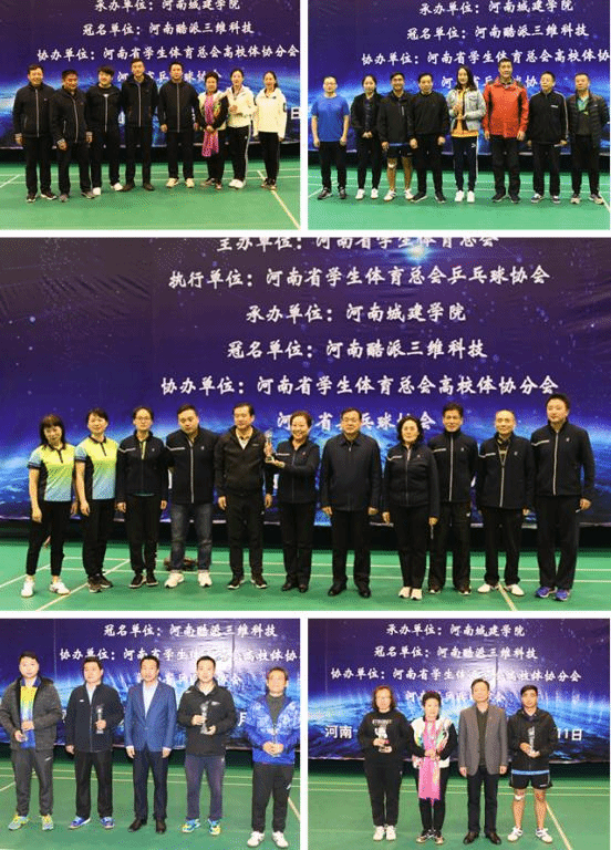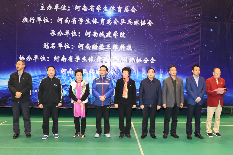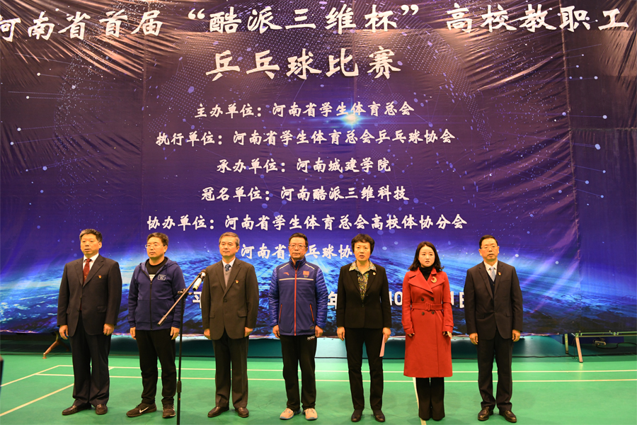 (通讯员 王智勇)11月10日上午,由河南省学生体育总会主办,河南省学生体育总会高校体协分会、河南省乒乓球协会协办,河南城建学院承办的河南省首届高校教职工乒乓球比赛在河南城建学院体育馆拉开帷幕。河南省学生体育总会乒乓球协会主席白威凉,河南省乒网中心副主任聂长忠,校领导张惠贞、王召东、许朝民、赵金安,河南省酷派三维科技有限公司董事长马玲等出席开幕式。共有来自全省49所省内高校近500名教职工代表参加比赛。开幕式由本届赛事组委会秘书长吴健主持。