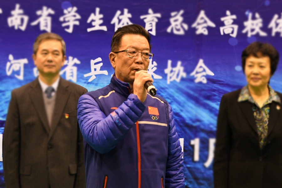 校党委书记张惠贞在致辞中首先代表河南城建学院对来自全省各兄弟院校的领导和老师来校表示热烈欢迎。她指出,长期以来,学校高度重视体育工作,多次承办省级大学生、校长杯乒乓球比赛、高校职工运动会等体育赛事,积极开展华光体育等全民健身活动,形成了热爱体育、投身运动的好氛围、好传统。河南城建学院承办此次比赛,体现了河南省学生体育总会对学校体育工作的肯定和信任,也提供了一个结交朋友、提升水平的好机遇、好平台。她表示,学校将以承办本届比赛为契机,进一步深化友谊、切磋提高球技,同全省兄弟院校一起,为进一步繁荣河南高校体育文化做出应有贡献。
