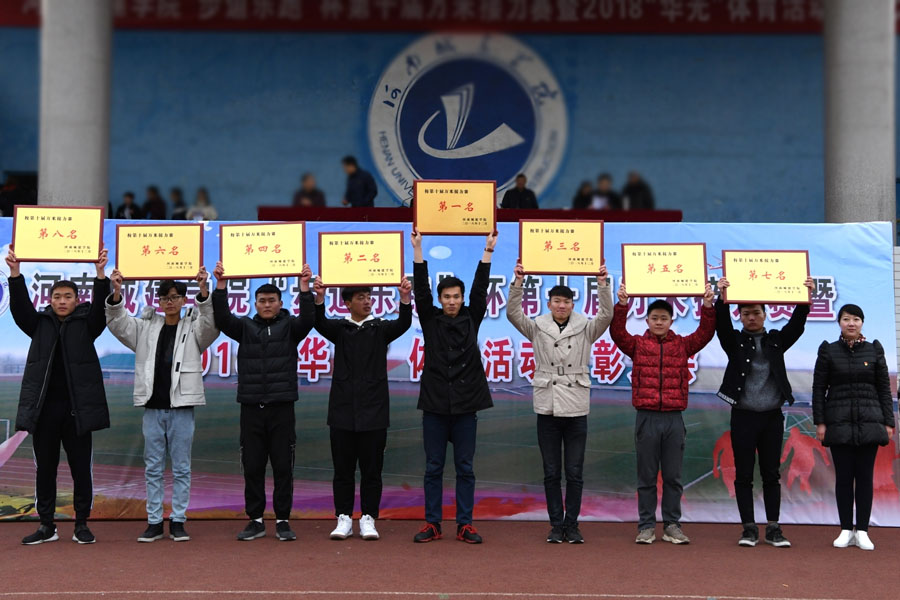 颁奖仪式上,对获得校2018年“华光”体育活动先进单位的管理学院、土木与交通工程学院、计算机与数据科学学院、能源与建筑环境工程学院、材料与化工学院等5个学院进行了表彰,同时表彰了校第十届篮球锦标赛、第三届足球联赛、“步道乐跑”特等奖等获奖单位与个人。