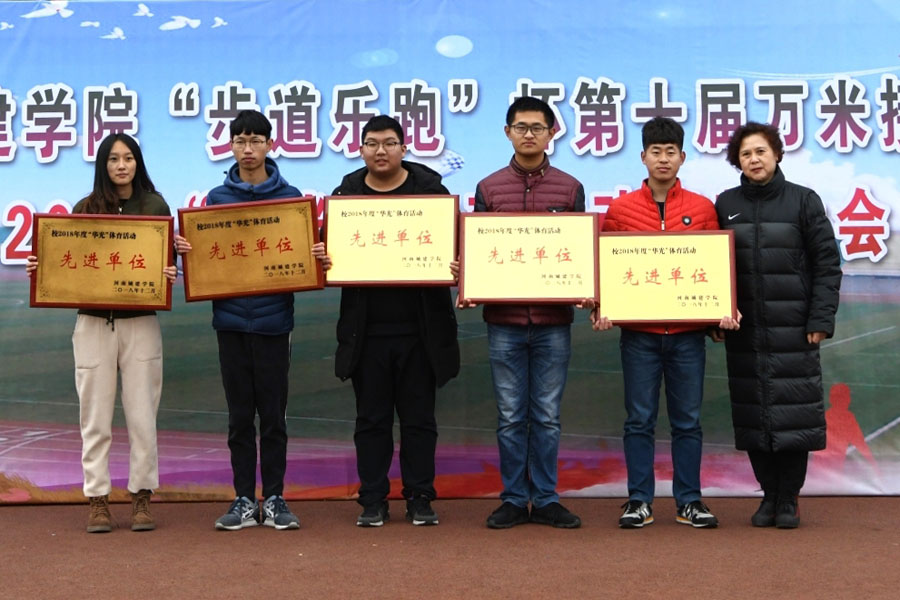 (通讯员 王智勇)12月7日下午,河南城建学院“步道乐跑”杯第十届万米接力赛暨2018“华光”体育活动表彰大会在五环体育场举行。校领导张惠贞、王召东、赵金安、王靖、刘守勇、周新峰,及各学院、各职能部门负责人为本次比赛领跑,部分教师及万余名学生参加了本次活动。